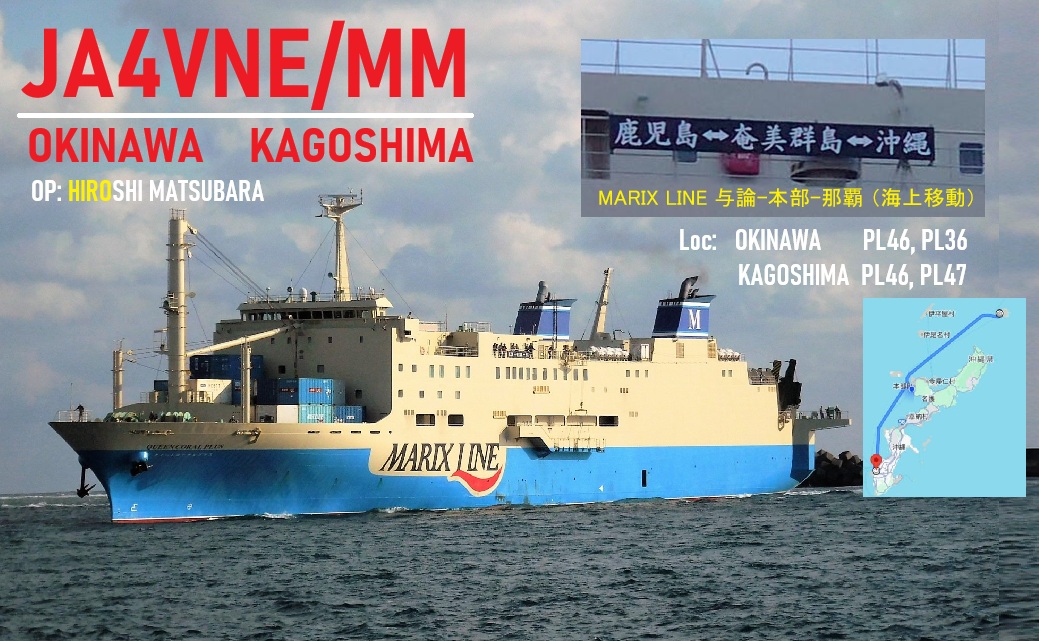 (追伸)本当に運用出来るかは微妙ですが、もし可能であれば、那覇港 ⇔ 与論港間のフェリー上で、マリタイム・モービル( HF-CW 10W )にもチャレンジしてみたいと思っています。