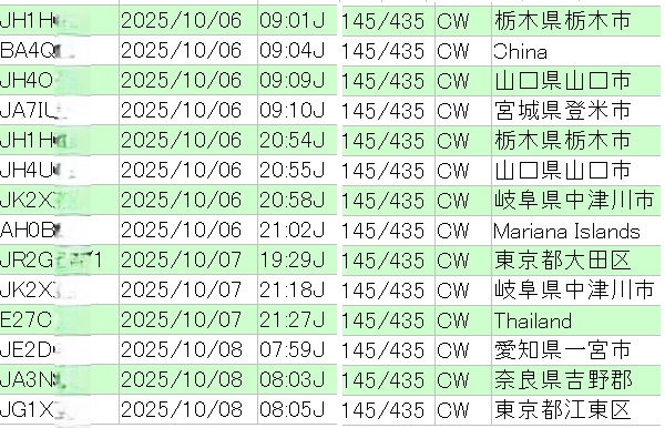 10月8日 水曜日。土日のBY主催「WAPC DX Contest」CW に参加して以降、シゴトの無い日は、再びサテライト通信が中心の運用に戻りました。